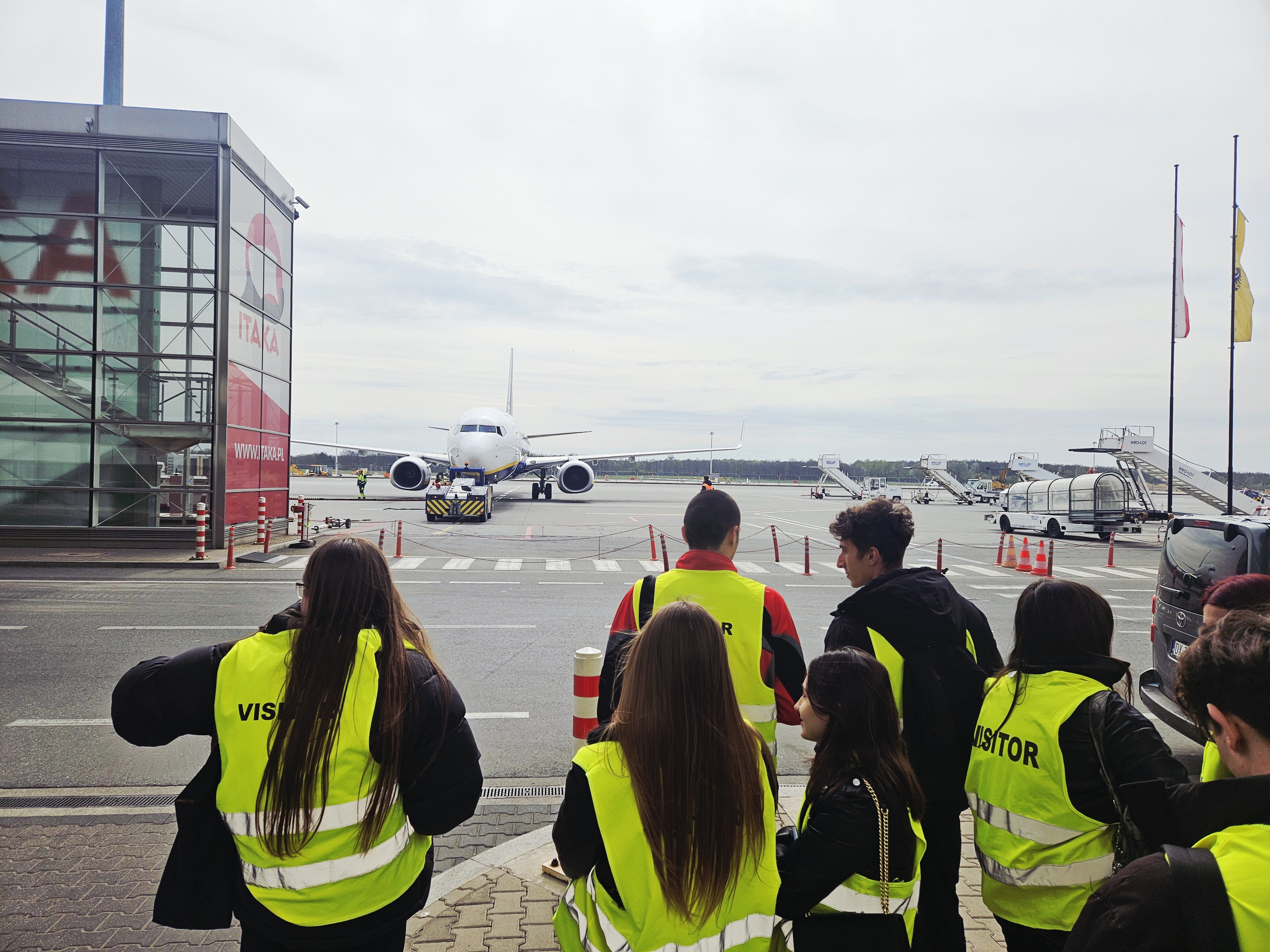 13 kwietnia 2026 r. odbyła się wizyta do Portu Lotniczego Wrocław .S.A. dla studentów kierunku logistyka. Uczestnicy wizyty zapoznali się szczegółowo z odprawą biletowo-bagażową i kontrolą bezpieczeństwa dla pracowników lotniska. Odwiedzili strefy zastrzeżone i miejsca niedostępne dla pasażerów. Mieli także możliwość obserwacji pracy całego zespołu obsługi naziemnej lotniska. Poznali wyposażenie stanowiska postojowego oraz ciekawostki dotyczące operacji logistycznych wykonywanych na płycie lotniska. Odwiedzili m.in. sortownie bagaży, strefę VIP dla podróżujących pasażerów oraz stanowisko kontroli bagażu.